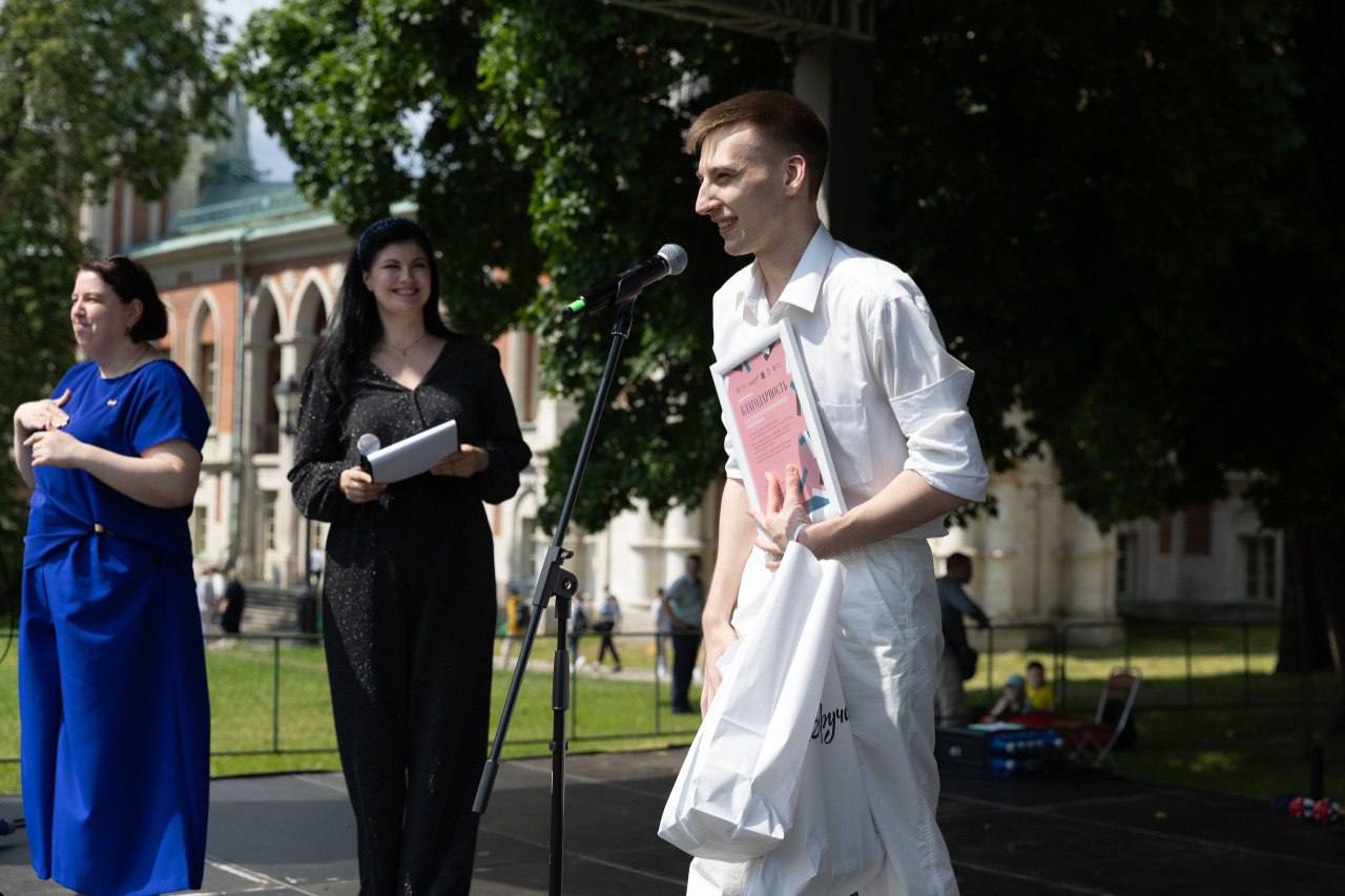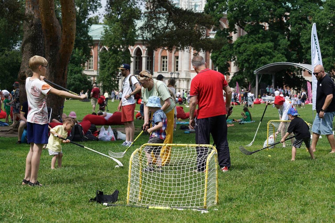 Поляна у Большого дворца на целый день превращается в огромную игровую площадку, где дети с инвалидностью и гости, решившие принять участие в событии, поют, танцуют, играют и учатся чему-то новому.