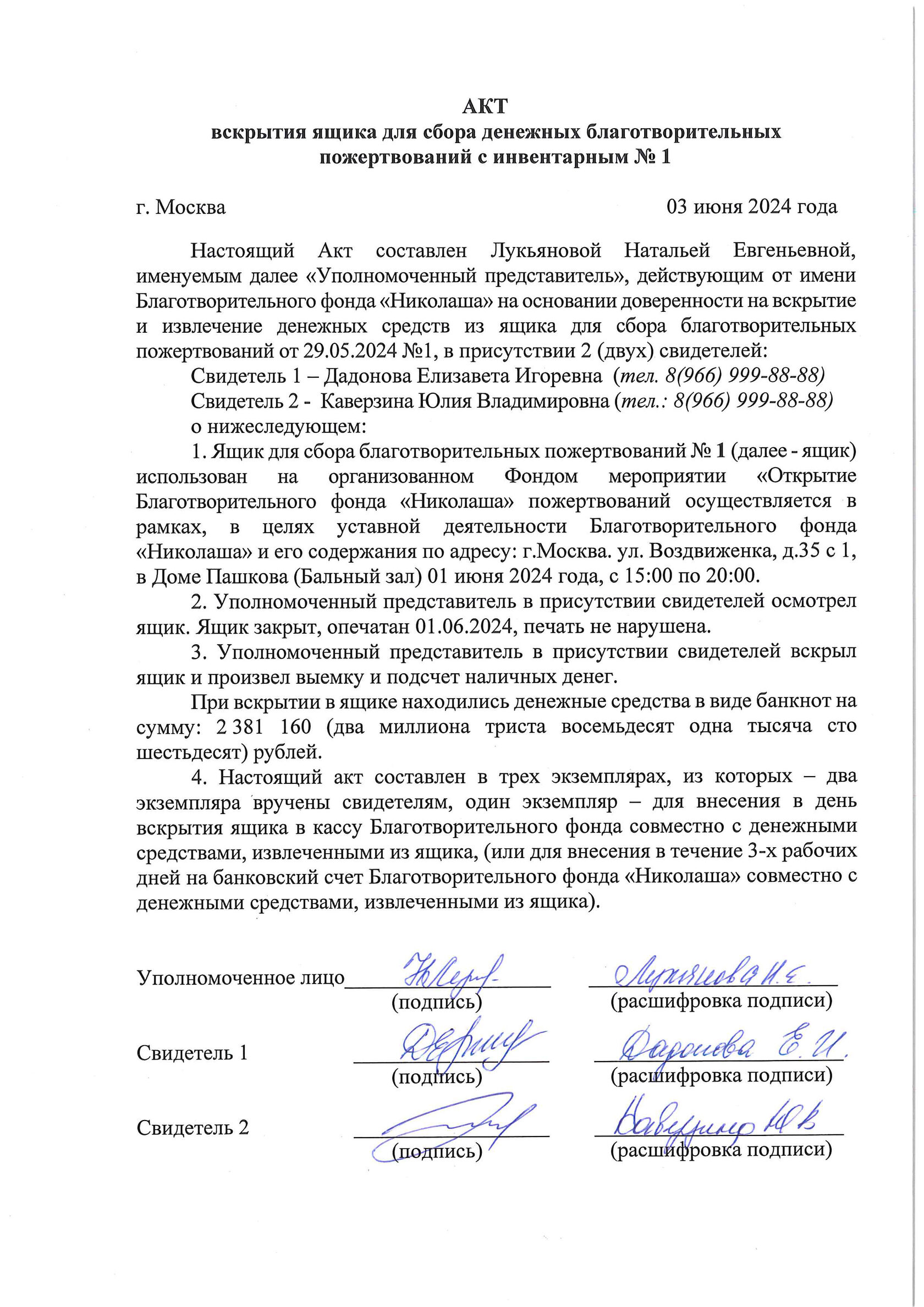 Церемония открытия благотворительного фонда «Николаша» прошла в День защиты детей. Необычный сценарий праздника полностью написали юные подопечные фонда. Дети попросили, чтобы гостей Дома Пашкова встречали ростовые куклы супергероев. Также организаторы пожелали, чтобы для праздника испекли шесть необычных тортов, а на сцене выступили настоящий космонавт, ведущий-рэпер, балерины Большого театра и Григорий Лепс с детской песней «Свинка в облаках».