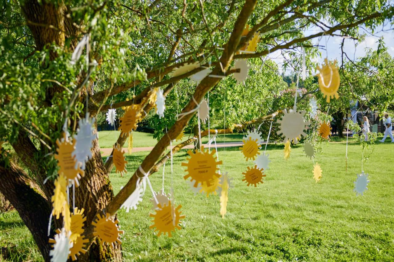 На праздновании дня рождения нашей организации выросло «Дерево Добра», на нем появились «Солнышки» с просьбами от детских учреждений.